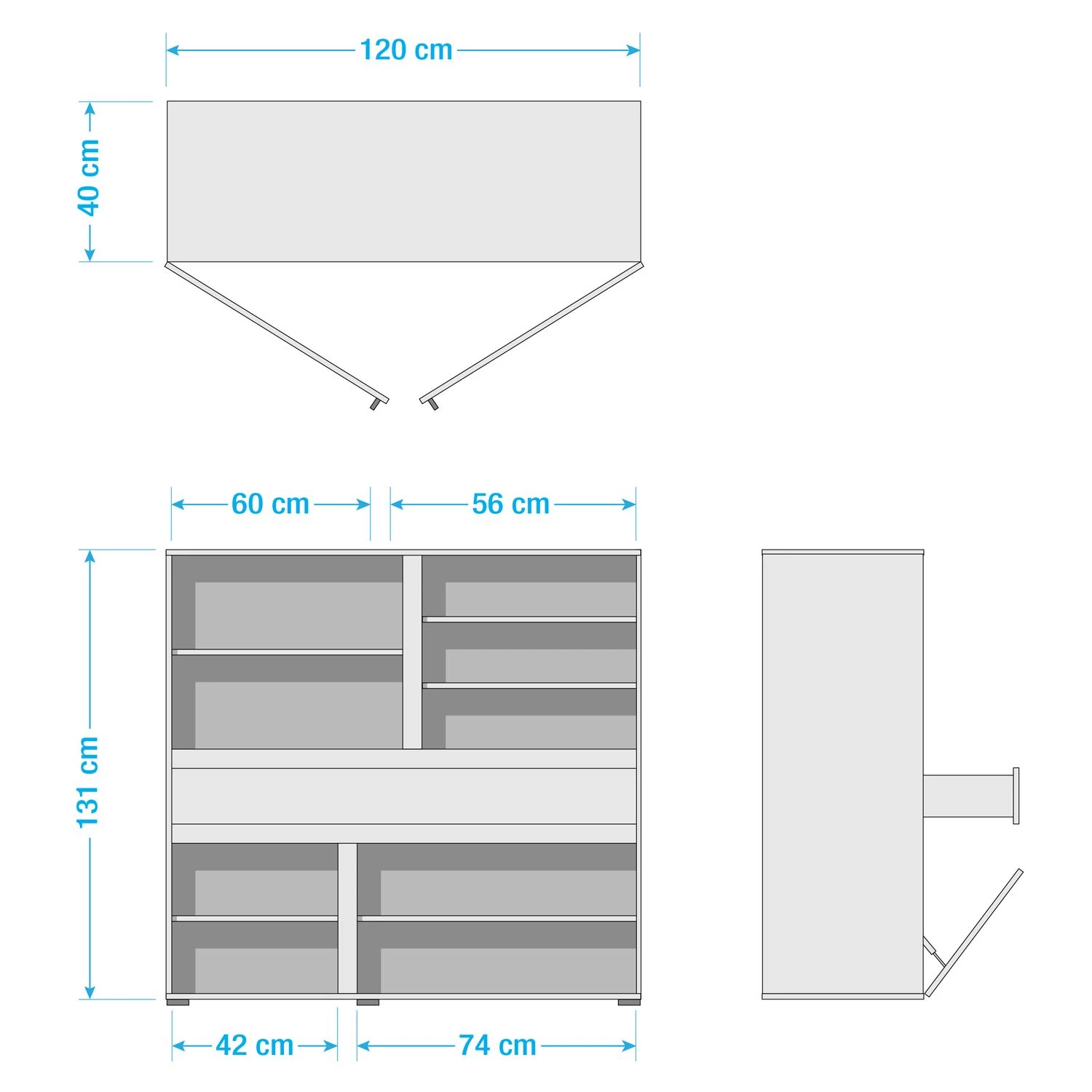 - Compartiment derrière l’abattant (sans tablette) : LxHxP : 74 x 37,8 x 31,5 cm