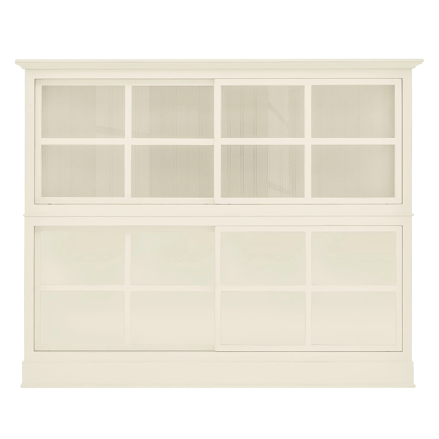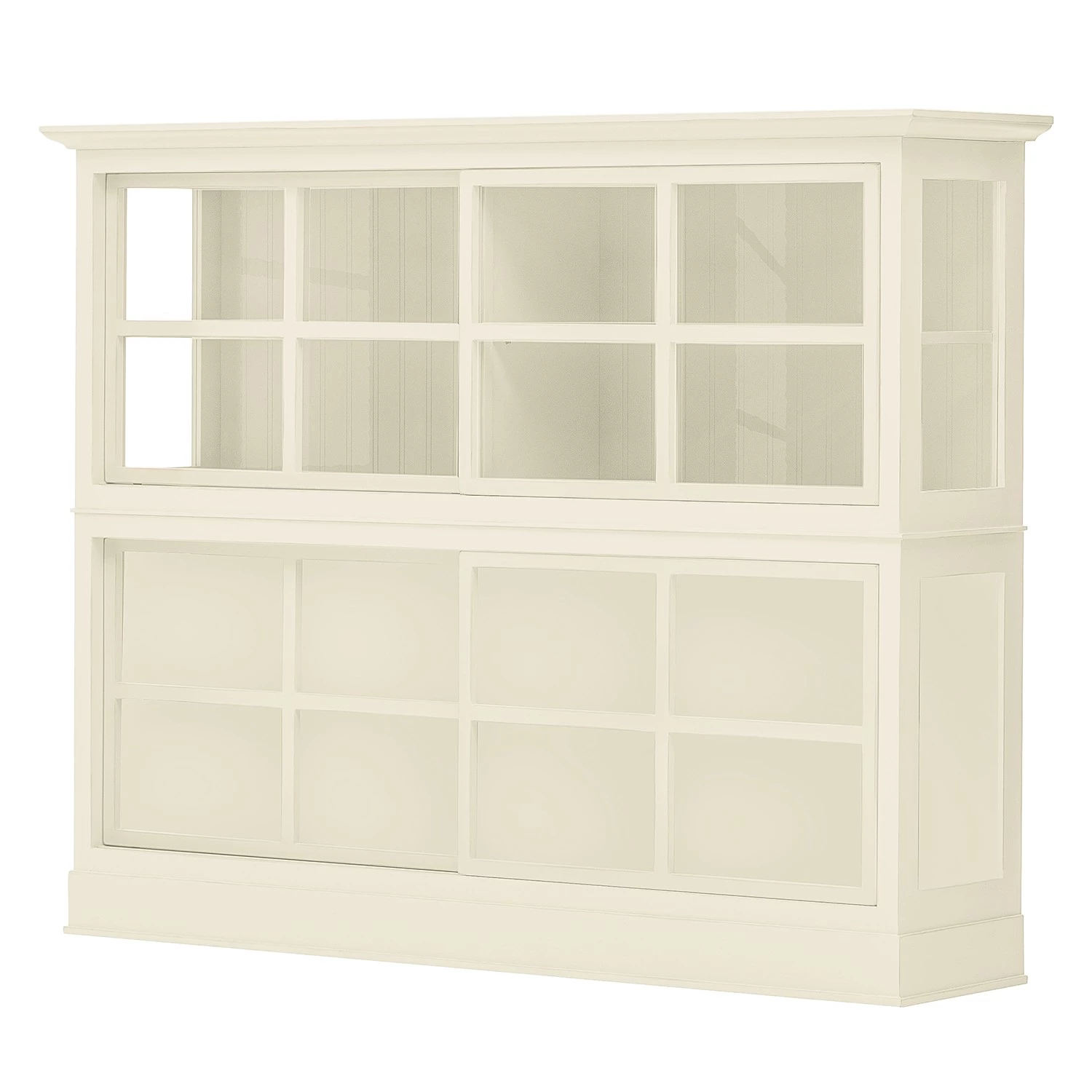 - 2 portes coulissantes, chacune avec 1 tablette en bois