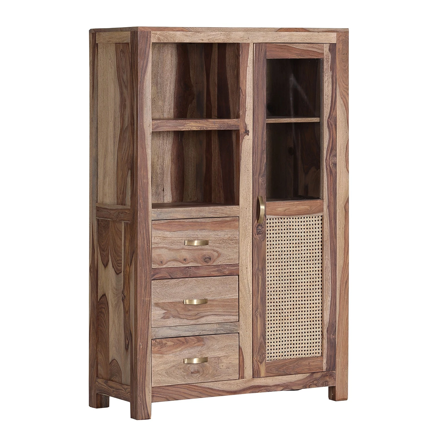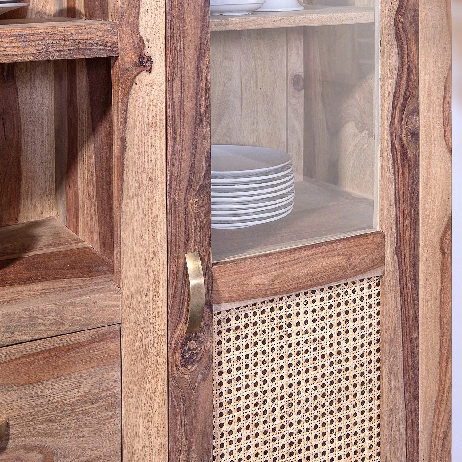 - Façade : rotin / sheesham massif teinté et verni